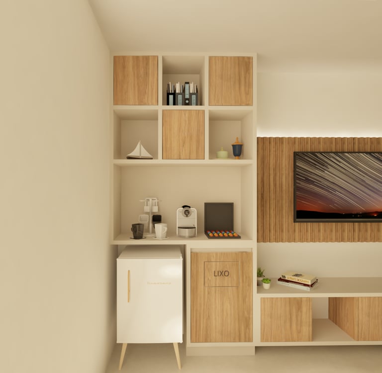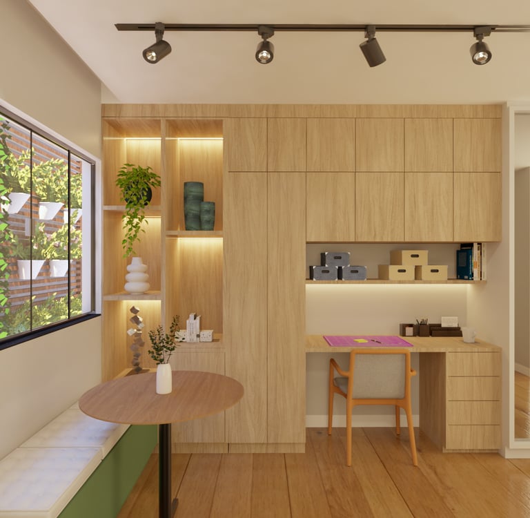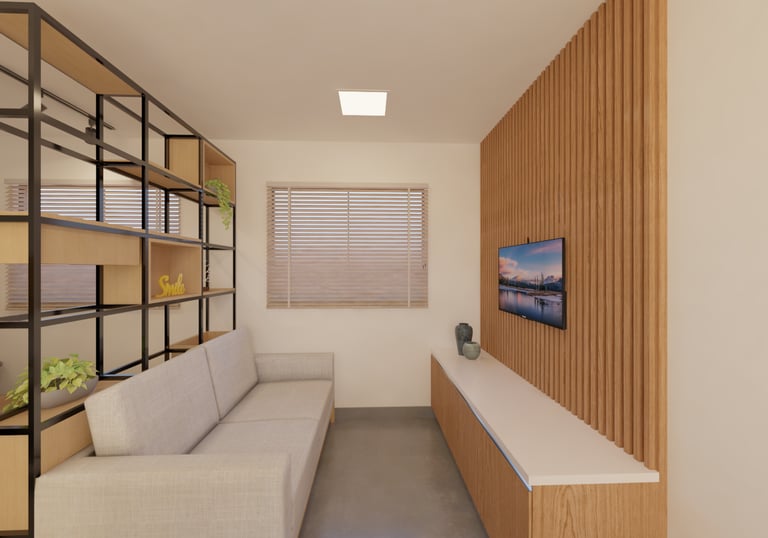 Aqui criamos ambientes que refletem a identidade de nossos clientes, unindo sofisticação e funcionalidade para promover bem-estar e significado em cada espaço projetado.
