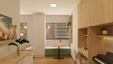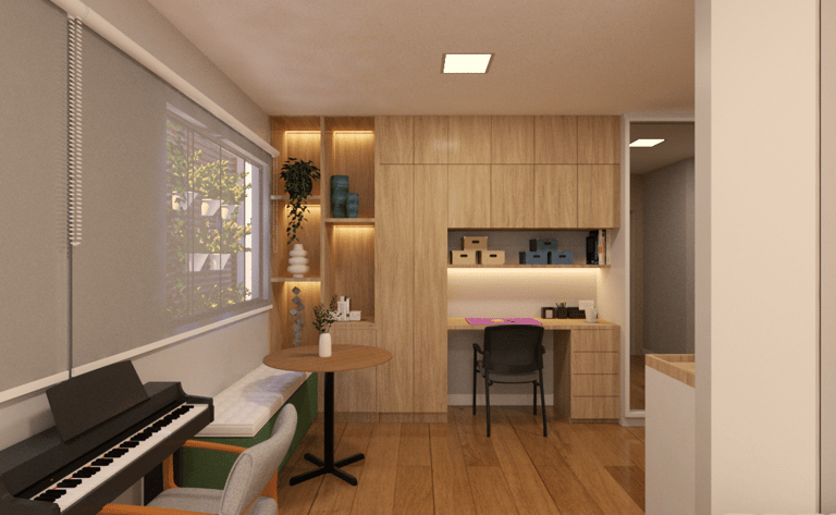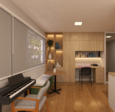 Aqui criamos ambientes que refletem a identidade de nossos clientes, unindo sofisticação e funcionalidade para promover bem-estar e significado em cada espaço projetado.